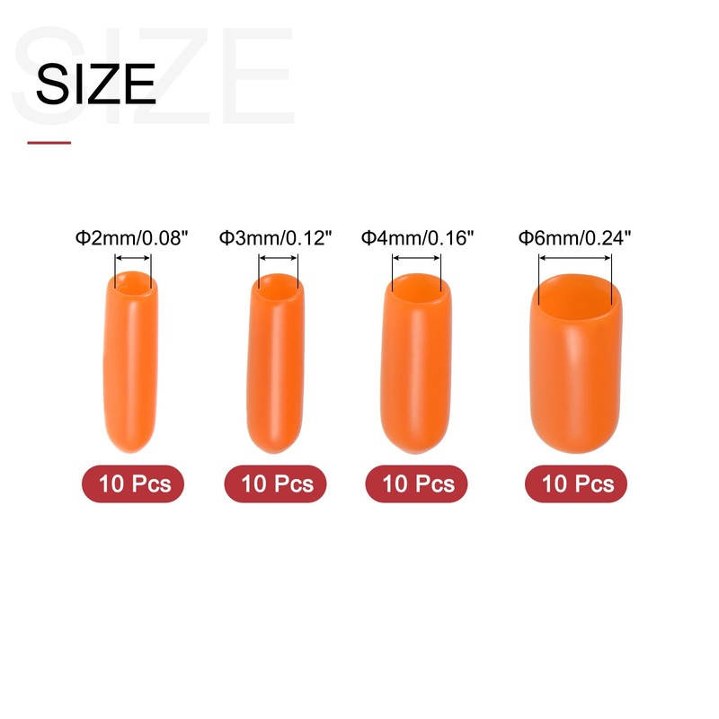 sourcing map sourcing map 40pcs Round Rubber End Caps Protective Caps 2mm 3mm 4mm 6mm Orange Vinyl Cover Screw Thread Protectors Assortment