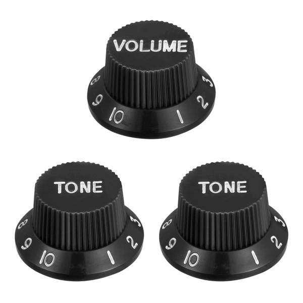 sourcing map Speed Control Knobs 6mm ID 1 Volume 2 Tone Top Hat Guitar Bell Knobs for ST/SQ Electric Guitar Plastic Black with White Characters