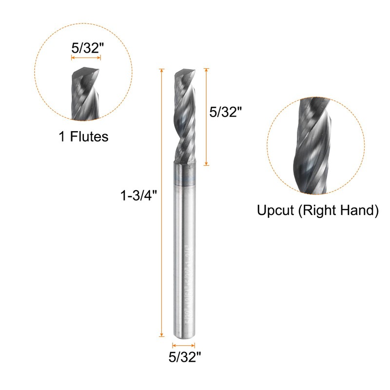 sourcing map Spiral Router Bit 5/32" Cut Dia 5/32" Shank Up Cut AlTiN Coated Solid Carbide 1 Flute CNC End Mill Milling Bits for Wood Alloy Steel Metal (43/64" Cut Length 1-3/4" Long)