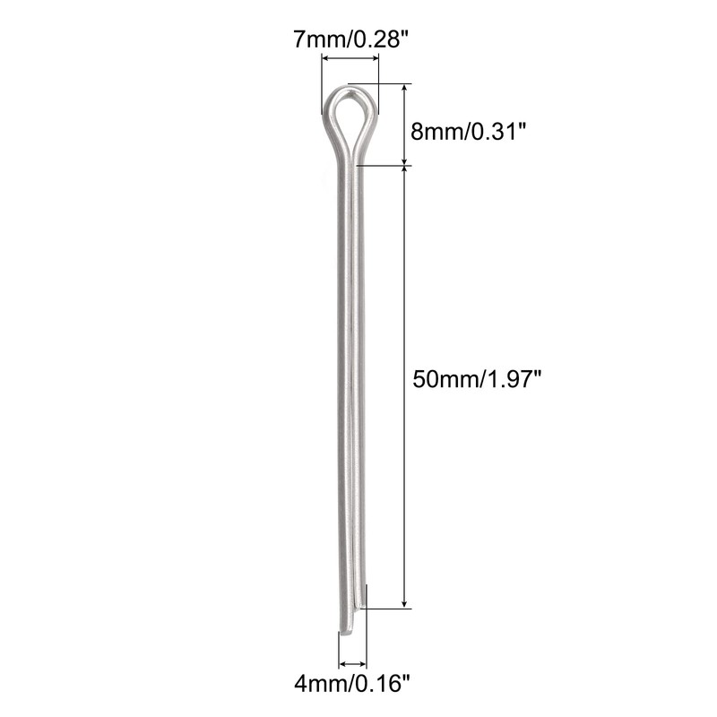 sourcing map Split Cotter Pin, 4mm x 50mm Stainless Steel Clip Fastener Fitting for Automotive, Mechanics, Silver Tone, 15Pcs