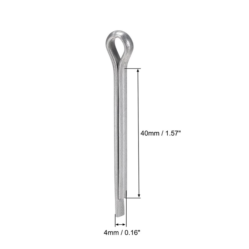 - Split Cotter Pin Size: 4mm/0.16 inch in diameter and 40mm/1.57 inch in height.