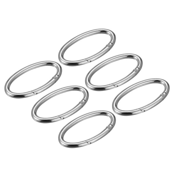 sourcing map Spring Oval Ring, 6Pcs 2.36 Inch Round Spring Snap Clip Trigger Spring Keyring Buckle for Bags Purses Keychain, Silver Tone