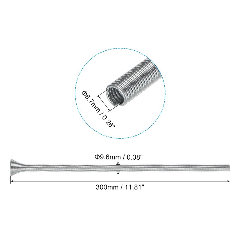 - Spring pipe bending tool,total Length:300mm/11.81 inch;Inside Diameter:6.7mm/0.26 inch;Outer Diameter:9.6mm/0.38 inch;Suit Copper Pipe:6mm/0.24 inch;Color:Silver white;Material:Steel;In the package of: 1 x Spring Tube Bender(outside-pipe use);