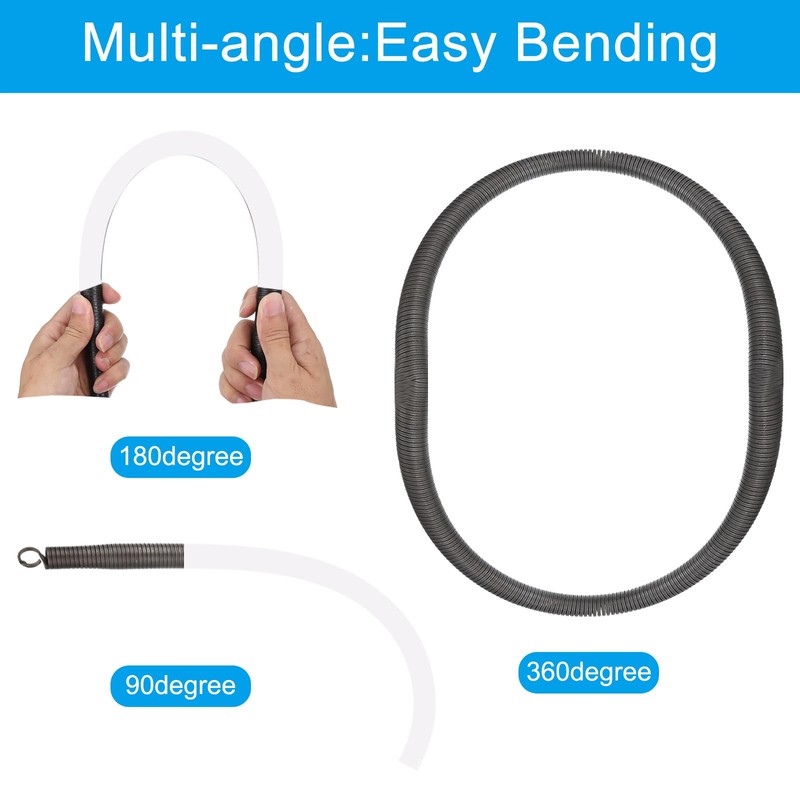 Spring pipe bending tool,total Length:520 mm/20.5 Inch;Outer Diameter:12 mm/0.5 Inch;Suit for 3/8" PVC Pipe(ID 13 mm);Color:Black;Material:Spring Steel;In the package of: 1 x Spring Tube Bender;