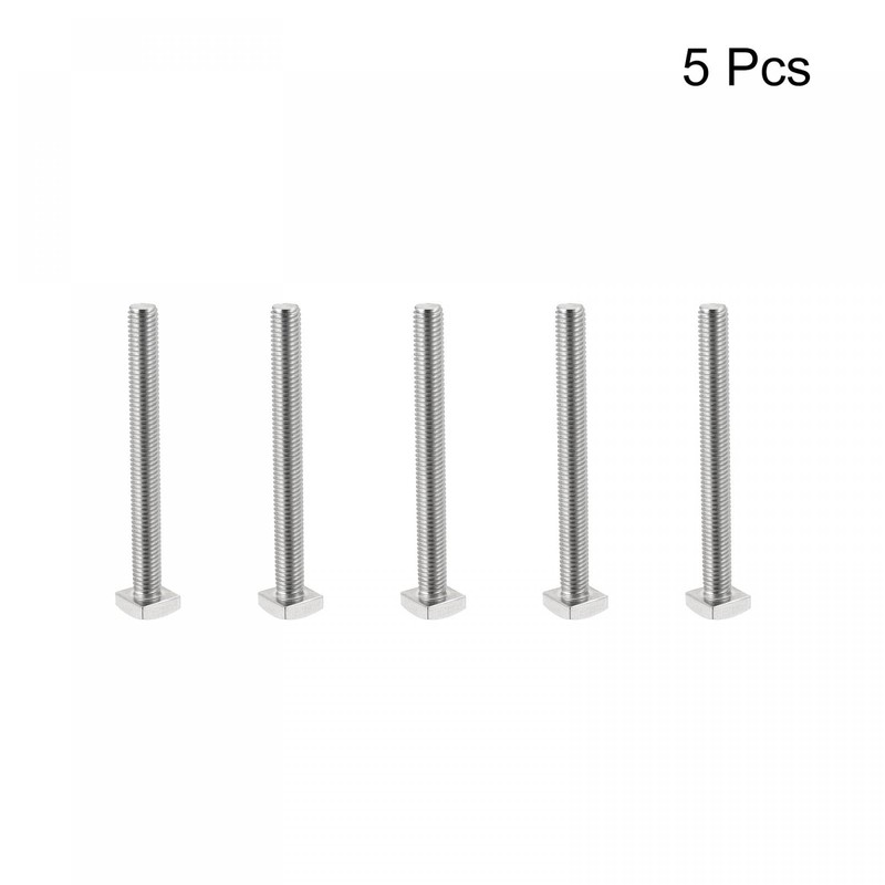 sourcing map Square Head Bolt, 5pcs M8x80mm Fully Thread 304 Stainless Steel Grade C Square Machine Screws