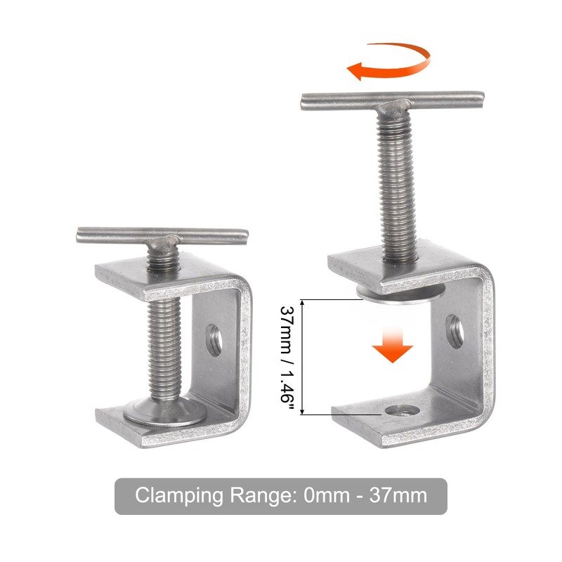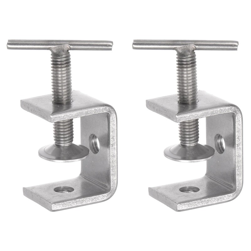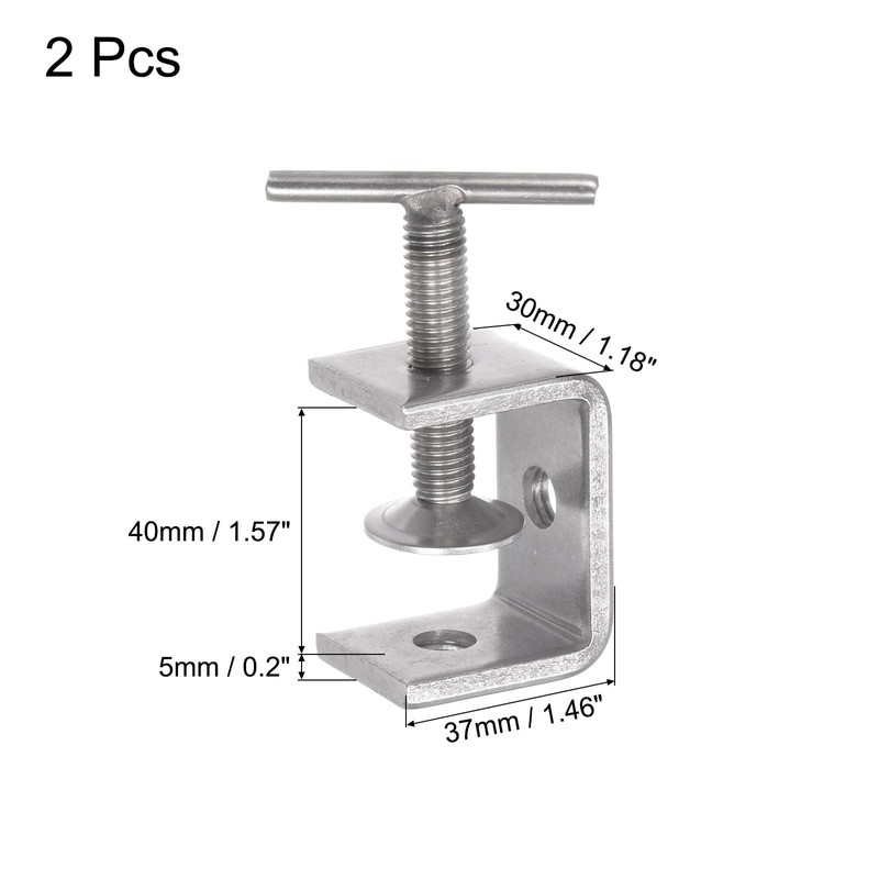 sourcing map Stainless Steel C-Clamp, 40mm Wide Jaw Opening with T-Bar Handle for Woodworking Welding Building 2 Pcs