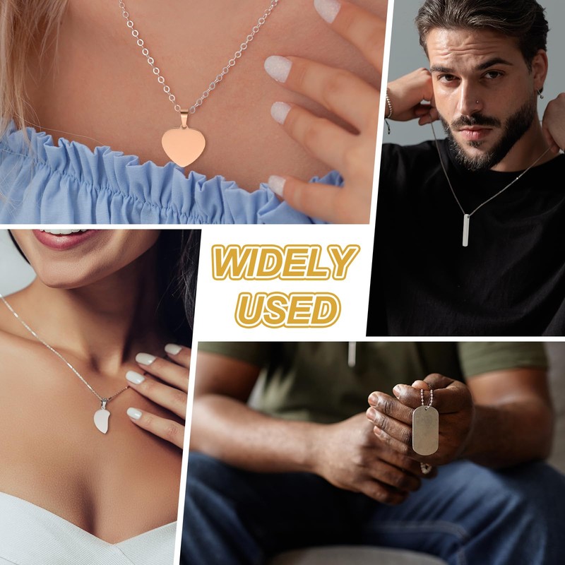- The stamping blank tag engravable necklace offers endless possibilities for personalization. You can engrave it with a loved one's name, a meaningful date, an inspirational quote, or any other text that holds significance to you.