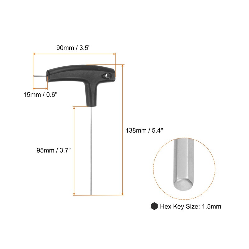 • Size - Hex Diameter: 1.5mm, Long Arm Shaft Length: 95mm / 3.7", Short Arm Shaft Length: 15mm / 0.6", Total Size: 138 x 90mm / 5.4" x 3.5"(L*W).