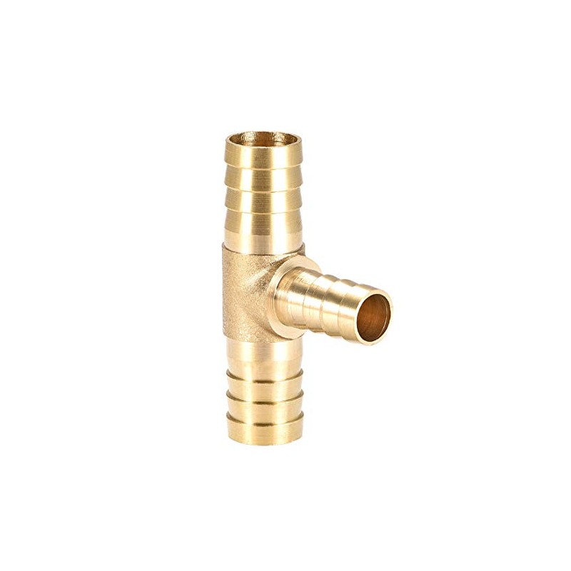 sourcing map Tee Brass Barb Fitting Reducer 3 Way, Fit Hose ID 16mm x 12mm x 16mm