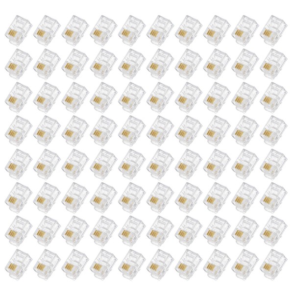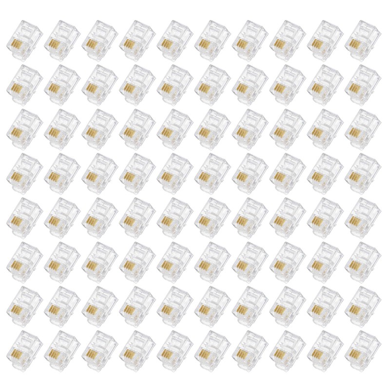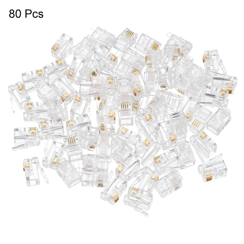 sourcing map Telephone Modular Plug Male RJ11 Connectors, Copper Core 4P4C Clear 80pcs