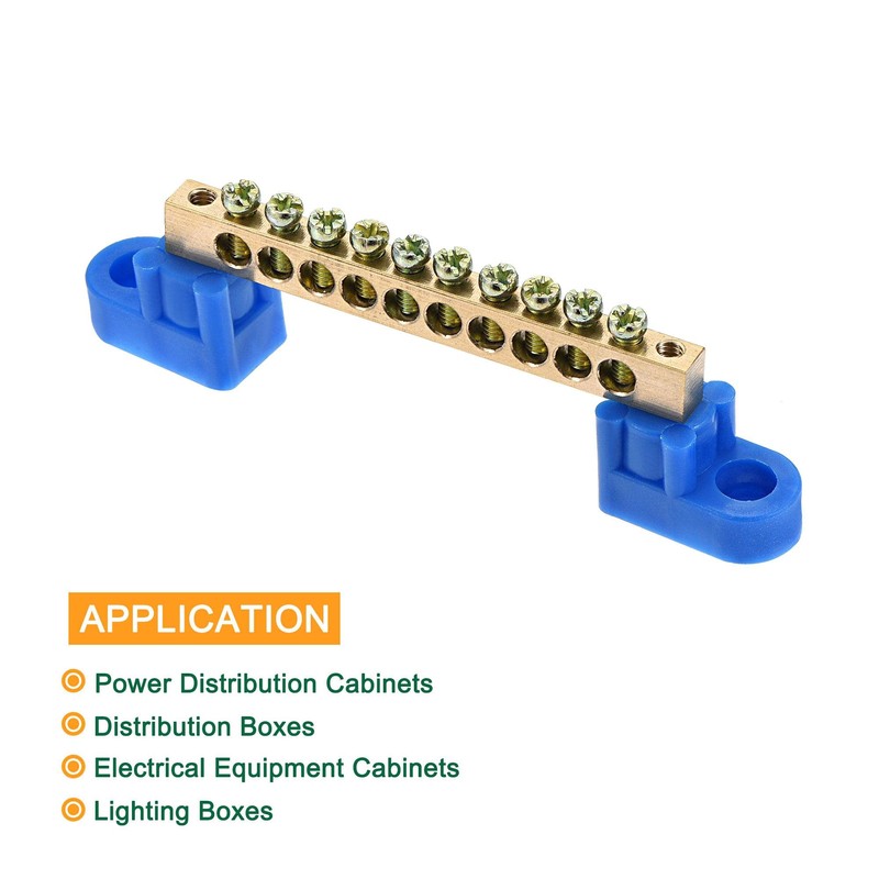 sourcing map Terminal Ground Bar Screw Block Barrier Brass 10 Positions Blue for Electrical Distribution
