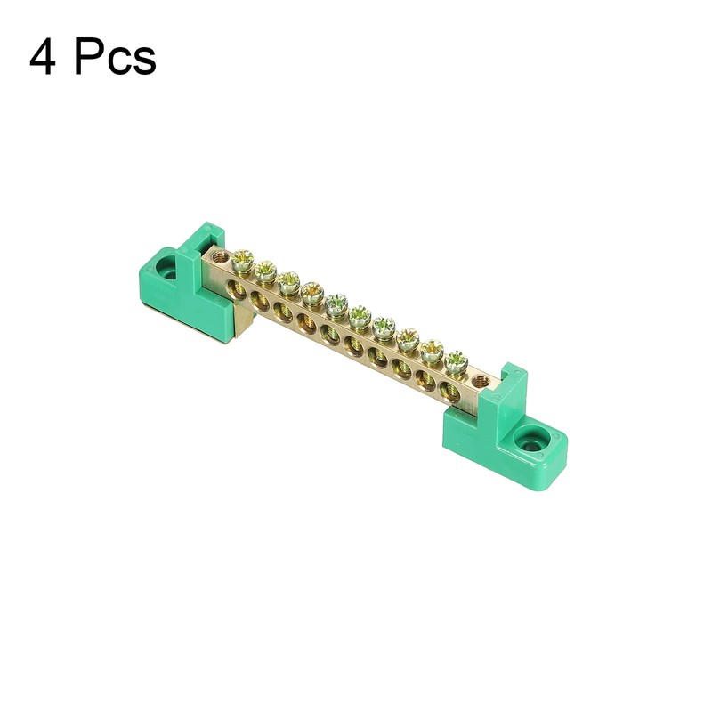 sourcing map Terminal Ground Bar Screw Block Barrier Brass 10 Positions Green for Electrical Distribution Pack of 4