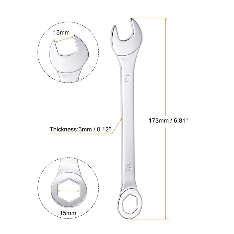 - Standard: 15 mm metric sizes, 6.81 inches (173 mm) total length.