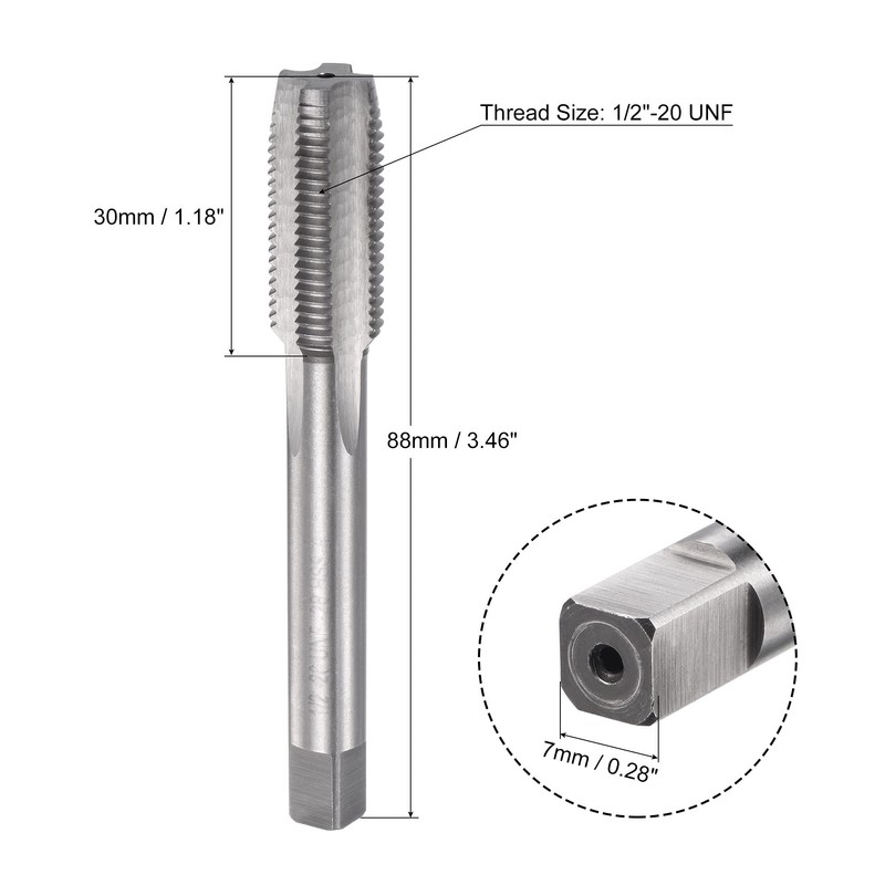 • Tap Size: 1/2"-20 UNF thread, 2B thread tolerance grade, left hand thread cutting. Straight flute design, downward chip removal, clear threads, fast tapping with accuracy.