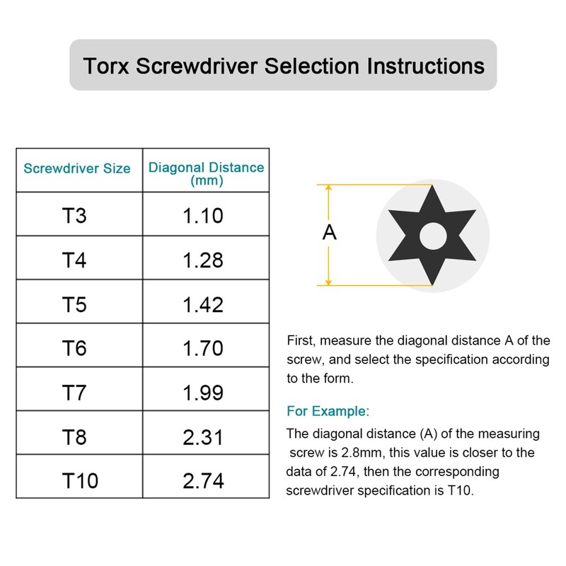 - Size - T15 & T20 torx head screwdriver with 0.2 inch (5mm) diameter 4 inch (100mm) long round shaft.