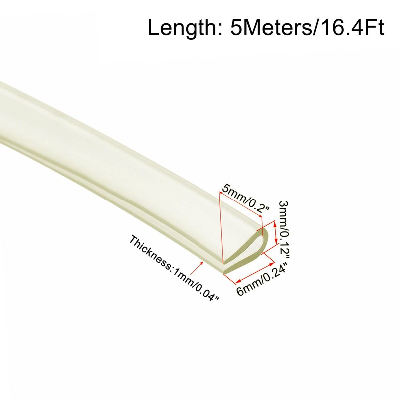 - Size: length: 5 metres/16.4 feet; width: 3 mm/0.12 inches; height: 6 mm/0.24 inches; matching edge: 1.5-2 mm; groove depth: 5 mm/0.2 inches; material: PVC.