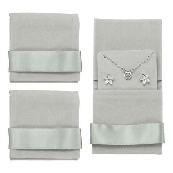 sourcing map Velvet Jewelry Pouch with Insert Pad 3.5 x 3.3 Inch Soft Jewelry Package Gift Storage Bag Easy to Carry Fit for Rings Necklace Bracelet, Gray