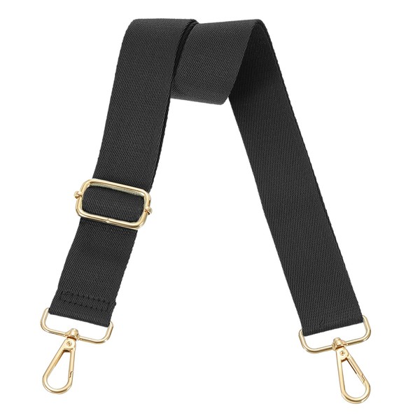 sourcing map Wide Shoulder Strap, 3.8cm Adjustable Purse Strap Replacement Crossbody Strap for Shoulder Bag Handbag, Black, Light Gold Pull Core Buckle