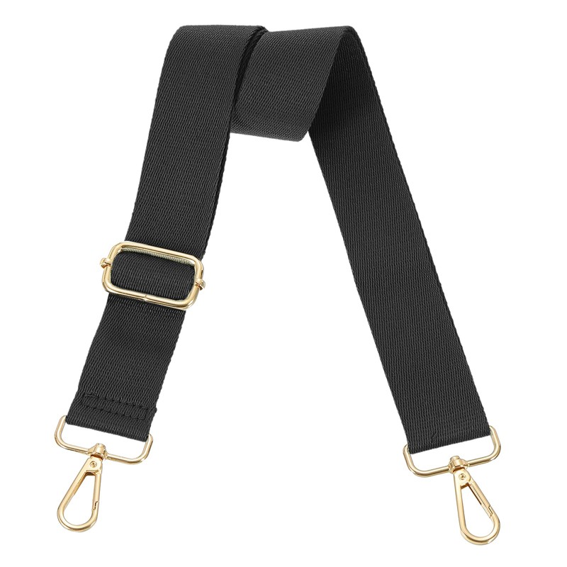 - Color: Black; Material: Cotton; Adjustable Length: 75cm-145cm / 29.53"- 57.09"; Width: 3.8cm / 1.5"; Package Content: 1Pcs x Wide Shoulder Strap(2Pcs x Hook Buckles, 1Pcs x Light Gold Pull-core Buckle)