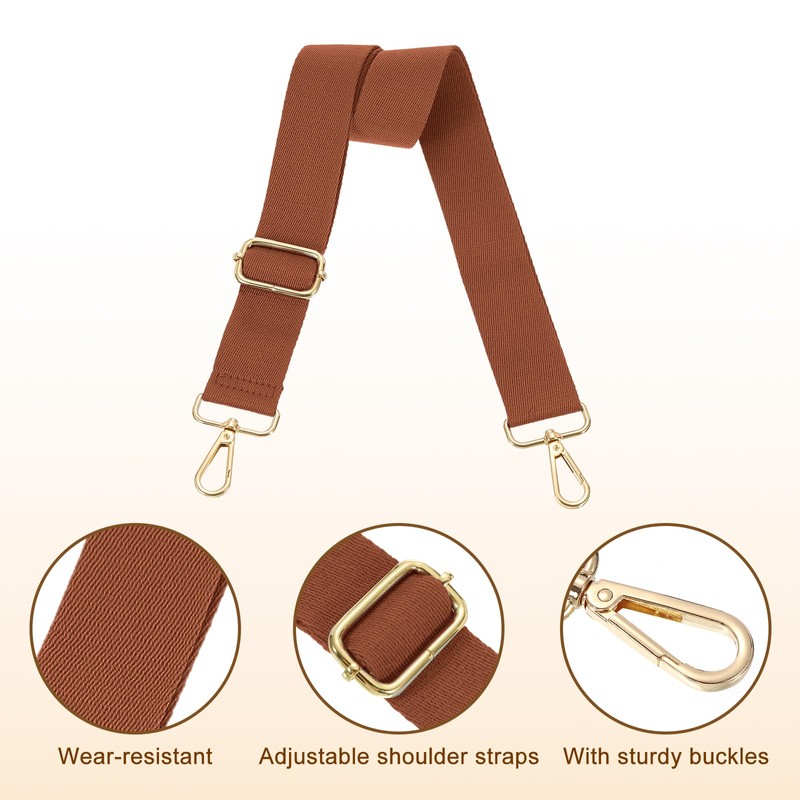 - Color: Reddish Brown; Material: Cotton; Adjustable Length: 75cm-145cm / 29.53"- 57.09"; Width: 3.8cm / 1.5"; Package Content: 1Pcs x Wide Shoulder Strap(2Pcs x Hook Buckles, 1Pcs x Light Gold Pull-core Buckle)