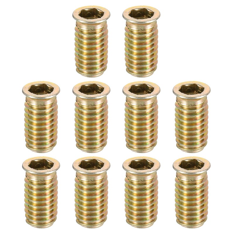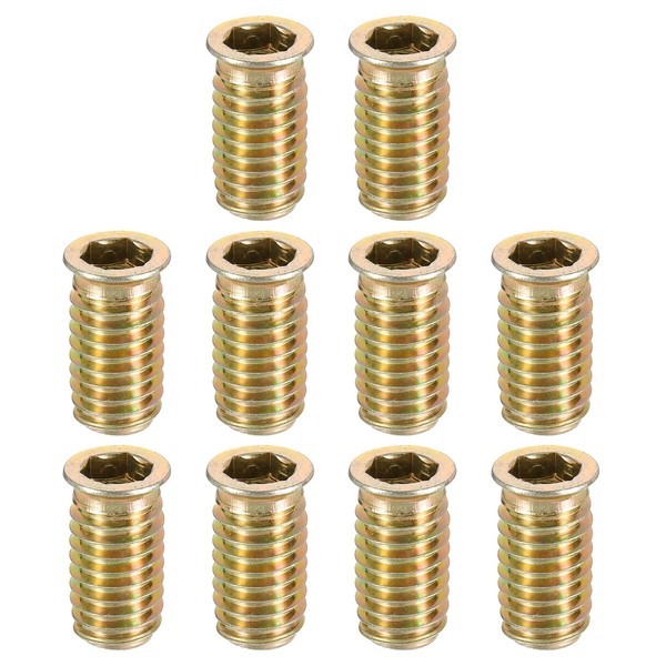 sourcing map Wood Furniture M10x30mm Threaded Insert Nuts Interface Hex Socket Drive 40pcs