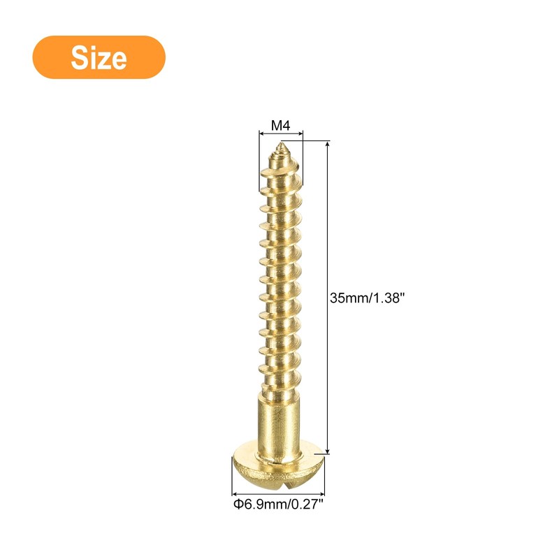 sourcing map Wood Screws M4 x 35mm Slotted Round Head Brass Self-Tapping Screw WoodWorking Screw 20 Pcs