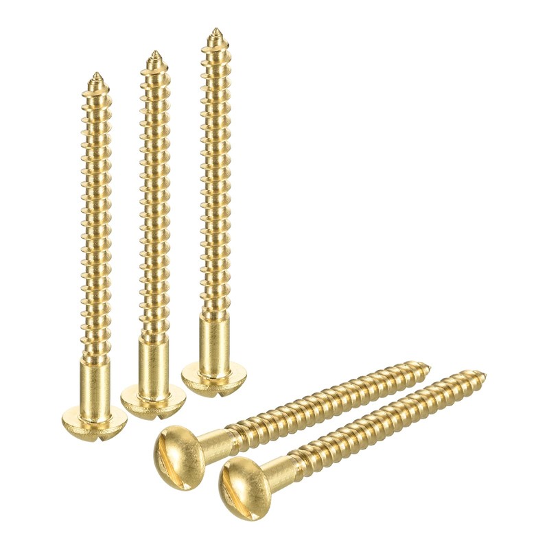 sourcing map Wood Screws M4 x 60mm Slotted Round Head Brass Self-Tapping Screw WoodWorking Screw 10 Pcs