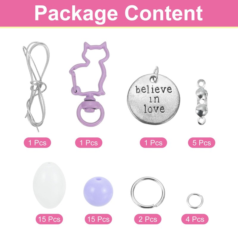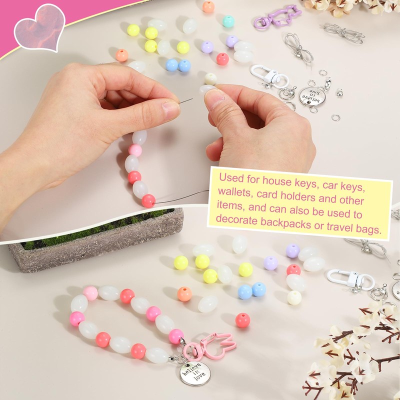 - Acrylic Beaded Key Ring: The package contains 1set x wristlet keychain (15pcs x Round Beads: 10mm/0.39", 15pcs x Oval Beads:10x15mm/0.39x0.59", 2pcs x Large Closed Loops: 12mm/0.47", 4pcs x Small Closed Loops: 6mm/0.24", 1pcs x Steel Wire: 30cm/11.81", 1pcs x Clip Buckle, 1pcs x Alloy Tag.