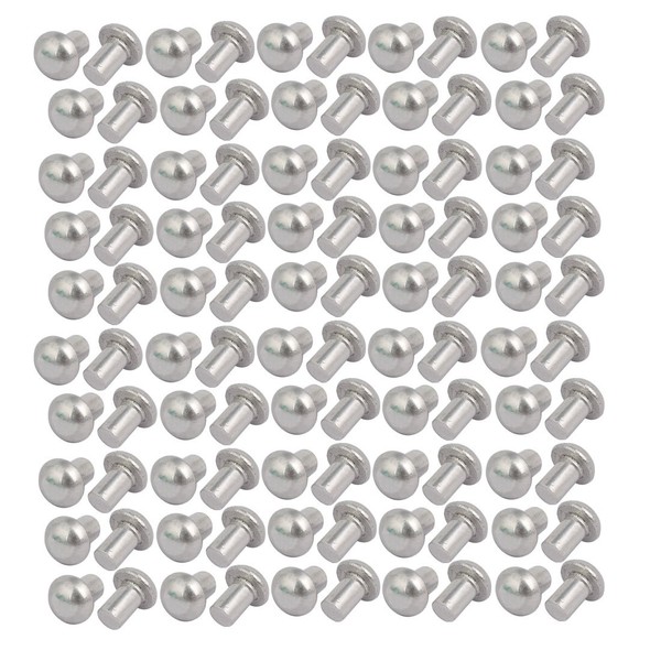 Sourcingmap 100pcs M4 x 6mm Aluminum Half Round Head Solid Rivet Fastener Silver Tone