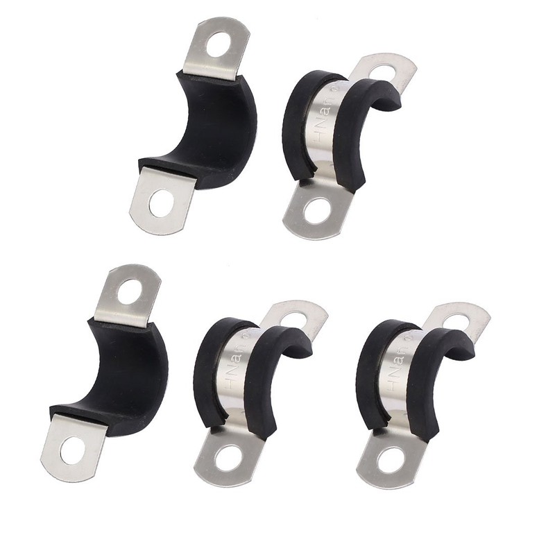 sourcingmap 15mm Dia EPDM Rubber Lined U Shaped Pipe Tube Wire Clamps Clips 5pcs