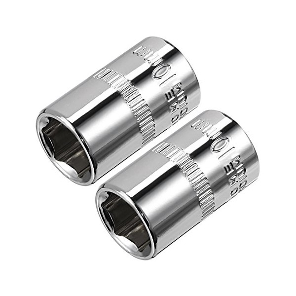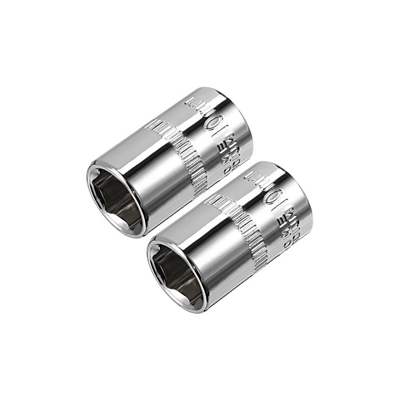 sourcingmap 2 Pcs 1/4-Inch Drive 10mm 6-Point Shallow Socket, Metric, Cr-V