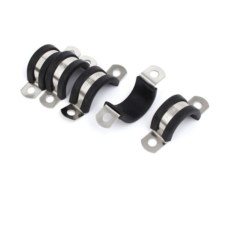 sourcingmap 20mm Dia EPDM Rubber Lined U Shaped Pipe Tube Wire Clamps Clips 5pcs