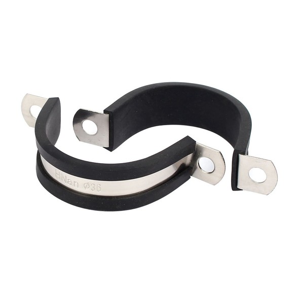 Sourcingmap 36mm Dia EPDM Rubber Lined U Shaped Pipe Tube Wire Clamps Clips 2pcs