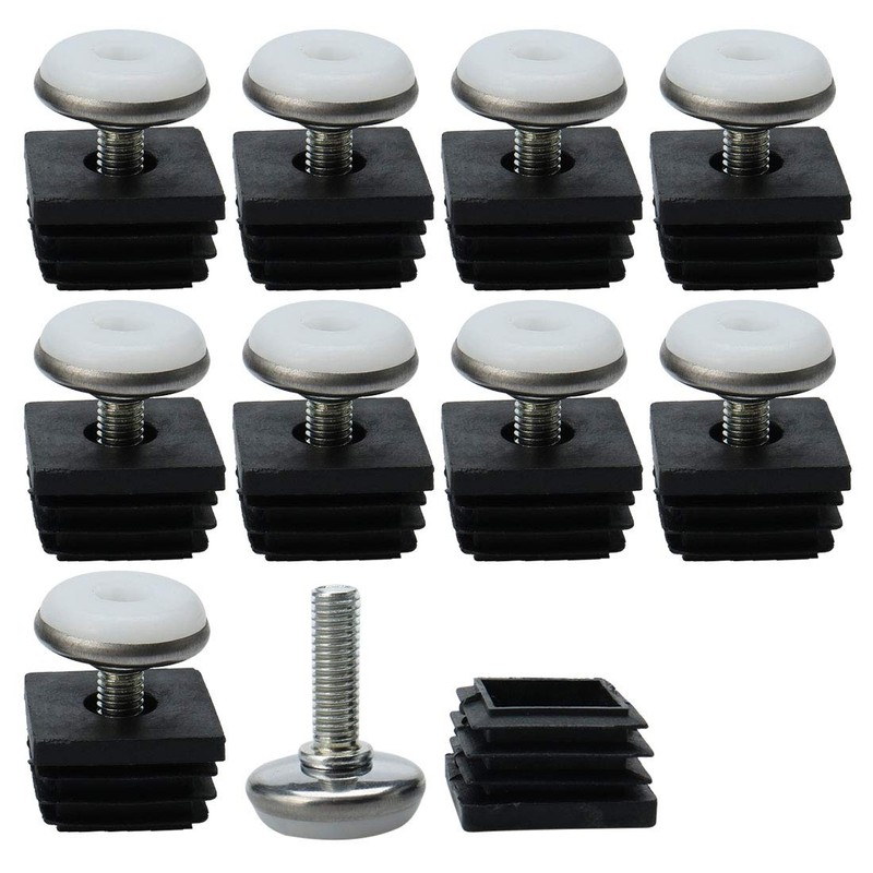 sourcingmap Adjustable Leveling Feet 25 x 25mm Inserts Furniture Table Glide 10 Pcs
