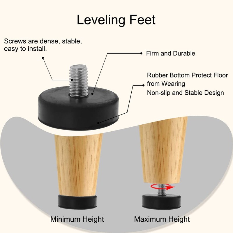 4.PREVENT MOISTURE - The thick rubber bottom and adjustable thread height keep the product feet away from the moist floor, effectively protecting the feet and floor to keep it tidy and beauty, and also prevent slippage to make it stable