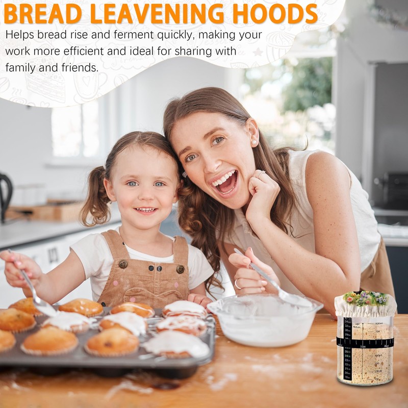 - Optimize Fermentation & Aeration:Effortlessly track your sourdough starter's growth with breathable cloth covers. Elastic edges create a snug seal for jars (3-4" diameter), ensuring optimal airflow to boost dough rise and fermentation.