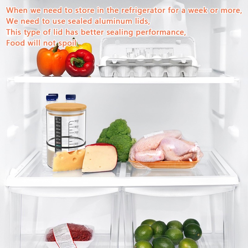 - [2 Storage Methods] This sourdough starter container has 2 storage methods to choose from. When we need to store it in the fridge for a week or more, we need to use the airtight wooden lid to make sure the food won't spoil, perfect for storing foods such as dried fruits, mixed vegetables, pickles, caviar and canned goods. In addition, when used as a fermentation, a breathable cotton linen lid with a strong elastic band allows air to flow smoothly in and out of the jar, making it suitable for natural yeast fermentation.