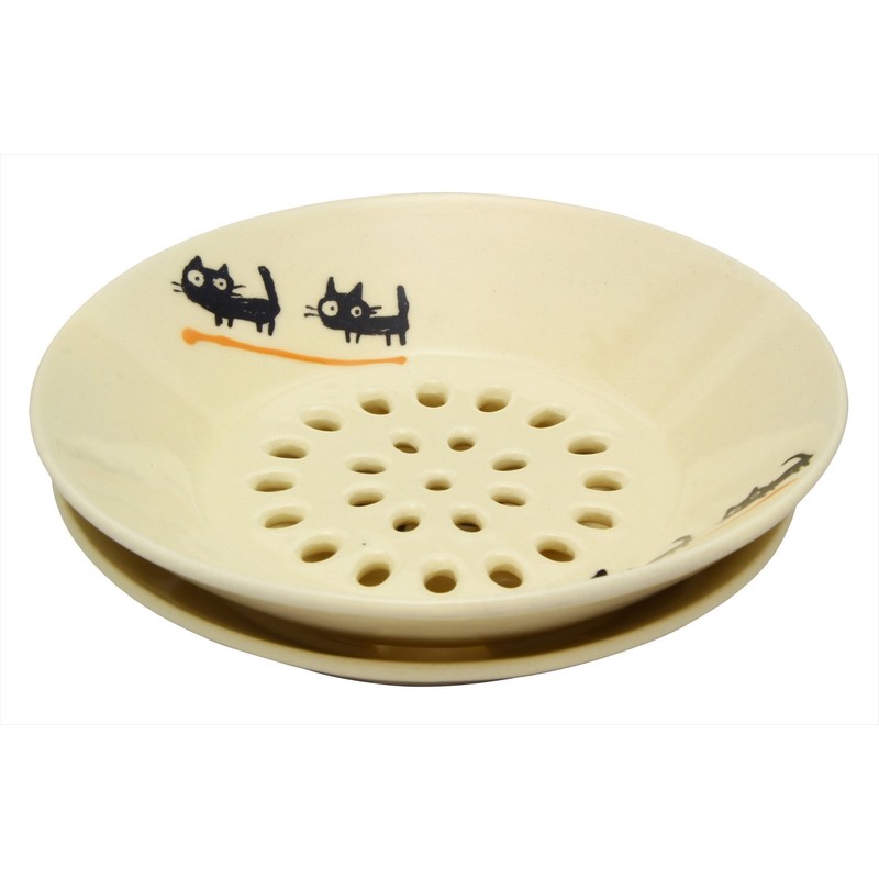 窯元 sousen Medium Plate Orange 15 cm Seto Ware Drainer Plate Black Cat Pattern