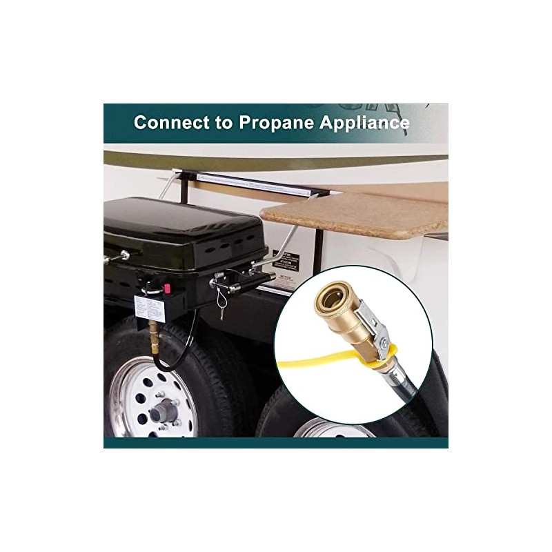 South Bend Components 3/8" ID Propane/Natural Gas/Air Hose with 1/4" Female Quick Connect Valve and one 3/8"Female Flare Fitting, Suitable for RV systems and more (5 feet long)