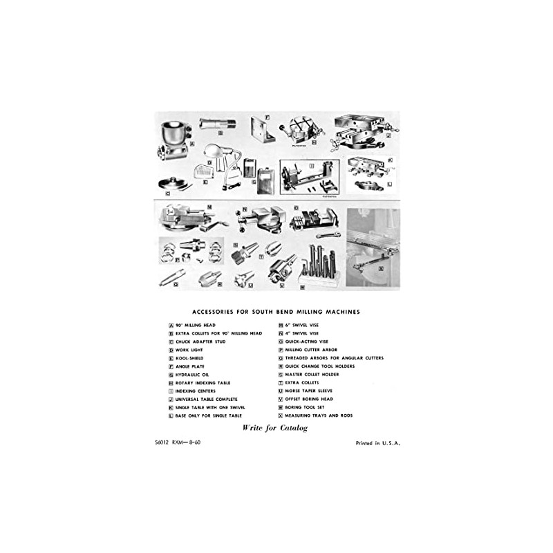SOUTH BEND Vertical Milling Machine Owner Operator Instruction Manual