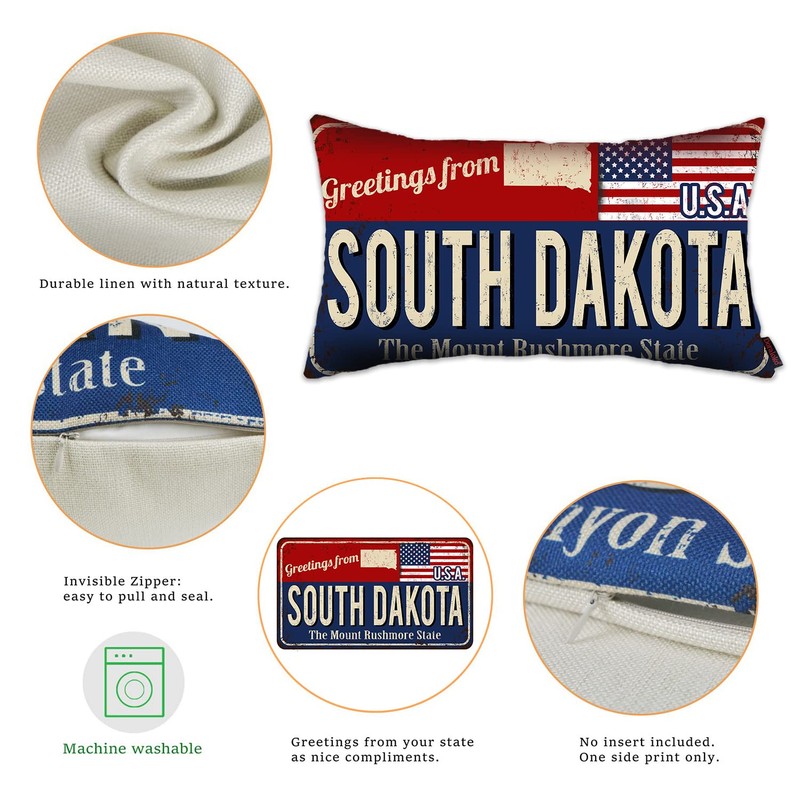 South Dakota Throw Pillow Cover 12x20 Set 2, South Dakota Decor Gift Souvenir, American Flag License Plate Lumbar Pillowcase, Greetings from Mount Rushmore State(SD, USA)-Cushion Case Sham, No Insert