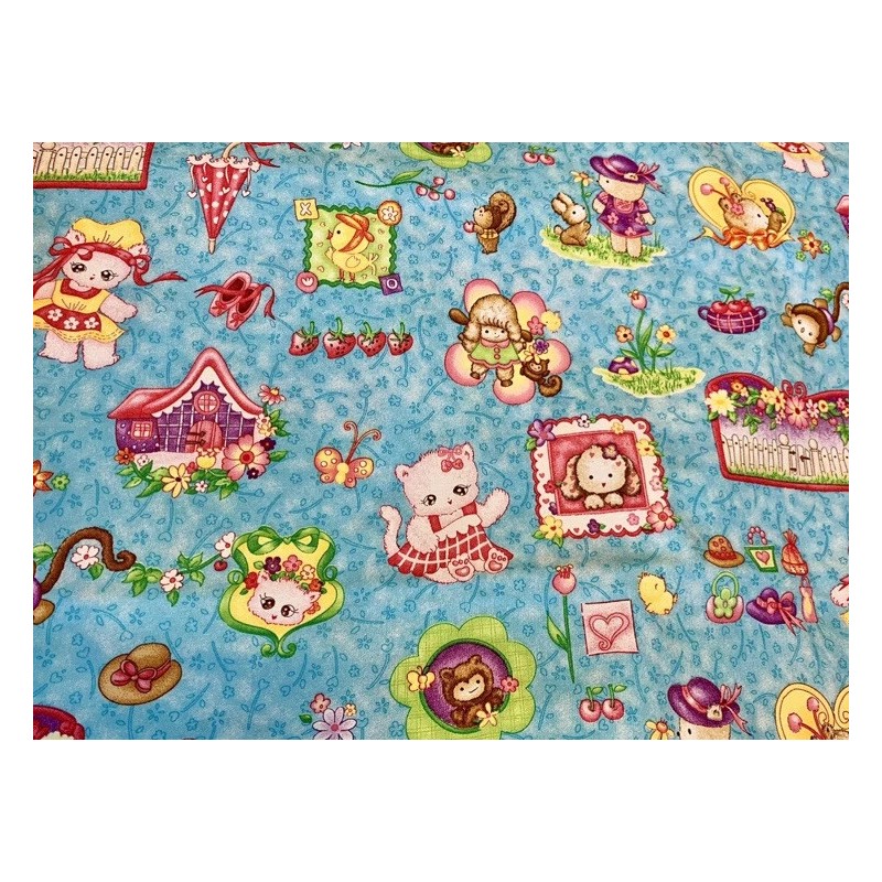 South Sea Imports SSI P7147 FROLICKING FRIENDS Animals Pink Green Yellow Blue Quilt Cotton Fabric