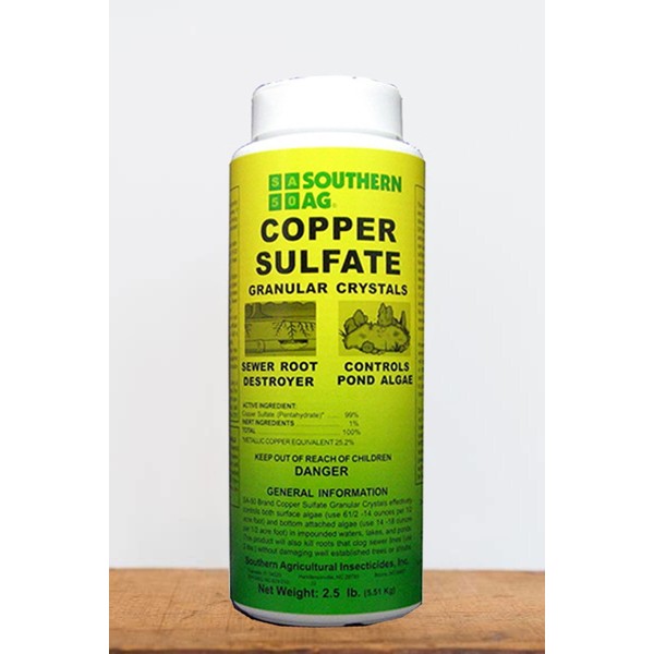 - Controls Surface Algae kills roots that clog sewer lines Contains 99% Copper Sulfate.