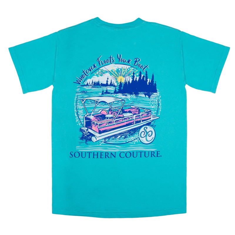 Southern Couture Floats Your Boat Lake Lagoon - Camiseta de moda de tela de algodón azul, Azul Lagoon, M
