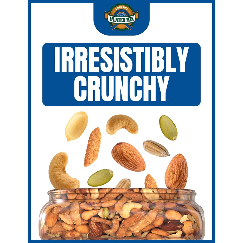 - Honey Roasted Hunter Mix is a unique blend of roasted nuts and flavorful, crunchy sesame sticks that's vegetarian and provides 6 grams of protein per serving