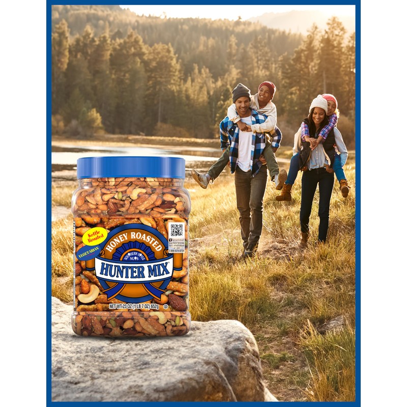 Many words can be used to describe Southern Style Nuts - Delicious. Magnificent. Irresistible. But when it comes to producing quality products at a fair price, only one word is appropriate – unmatched. Our company was established as a simple purveyor of peanuts and has blossomed into a beloved brand known for distinctive and satisfying nut blends. Please enjoy and savor our products… for the love of snacking. Southern Style Nuts Honey Roasted Hunter Mix is a one-size-fits-all trail mix for those of us who like sweet & savory snacks. With honey-roasted peanuts and sesame sticks, roasted salted sunflower meats, almonds, cashews and pepitas, it’s hard to decide what to eat first. So, whether you prefer “hunting” for individual items or just grabbing a handful on the run, please enjoy…