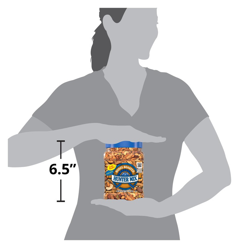 - Contains 1- 23 Ounce reusable canister of Southern Style Nuts Honey Roasted Hunter Mix