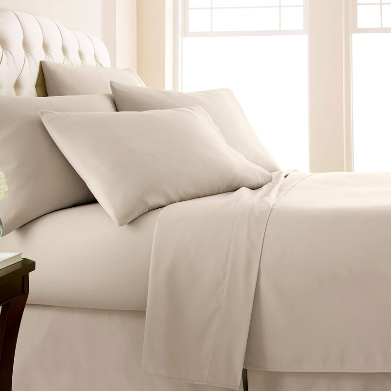 SouthShore Fine Living Inc. 6-Piece, 21-Inch Extra Deep Pocket Bed Sheet Set, Premium Quality, Easy Care, Shrinkage Free Sheet Set with 1 Flat Sheet, 1 Fitted Sheet, 4 Pillowcases, Bone, King