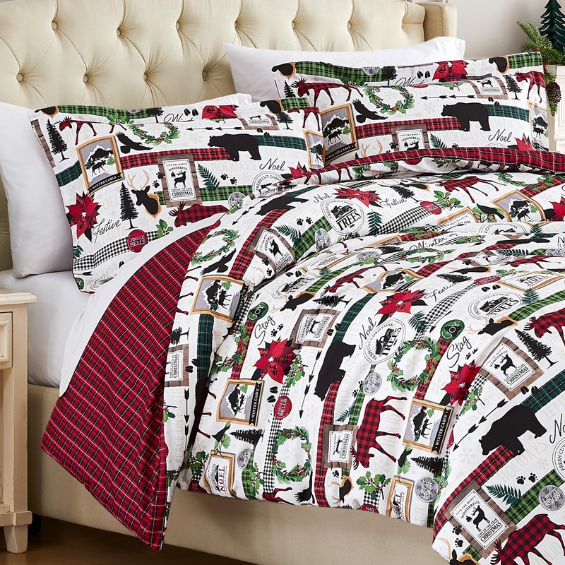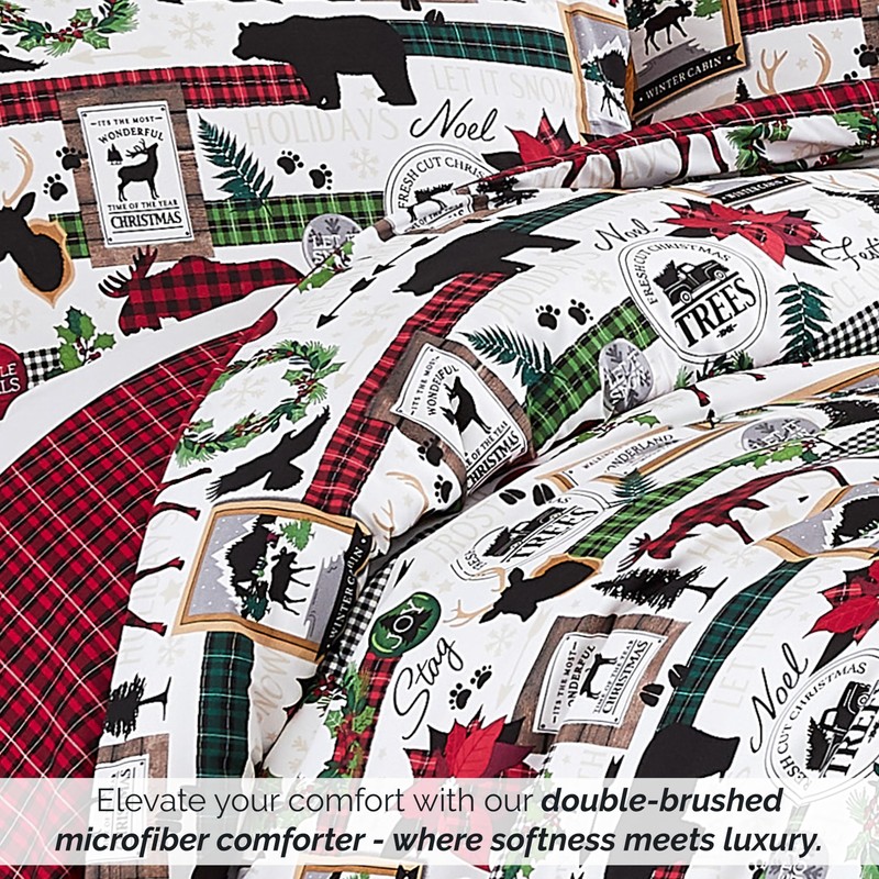 - COZY, DOWN-ALTERNATIVE CHRISTMAS COMFORTER SET, FULL OR QUEEN SIZE: Our Christmas bedding queen size / full size complements our luxury hotel quality bedding collection. Plush, double-brushed microfiber offers a soft, cozy touch and the feel of a down comforter.