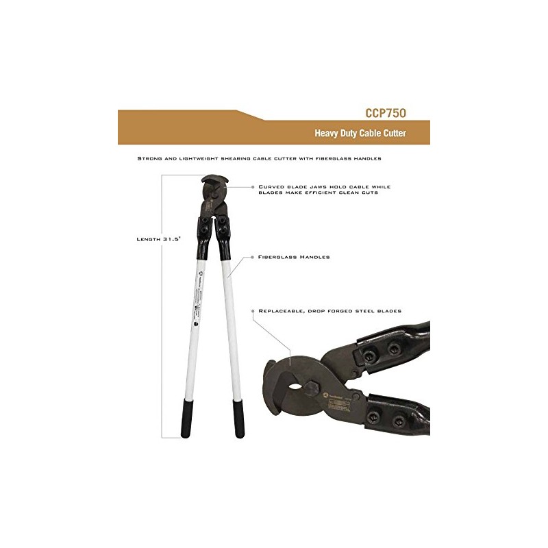 - Cuts up 750 MCM copper and 1000 MCM aluminum and 1-1/2"" diameter communication cables